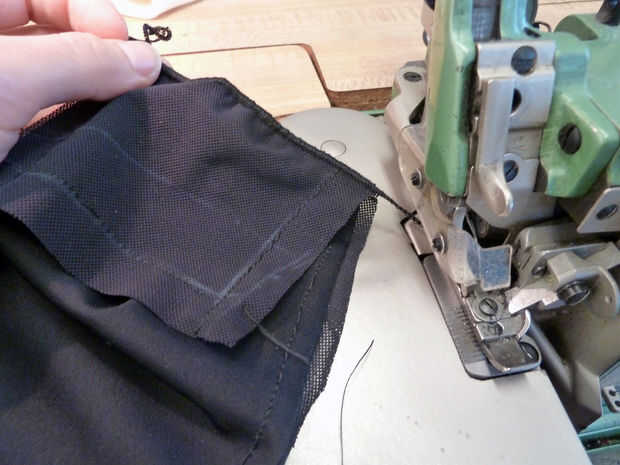 Foto 2) cubrió a la malla por el revés de la tela exterior y cubrió a dispersión ellos juntos por lo que pude plano línea les (coserlas a plano) sin las capas de desplazamiento y torsión.