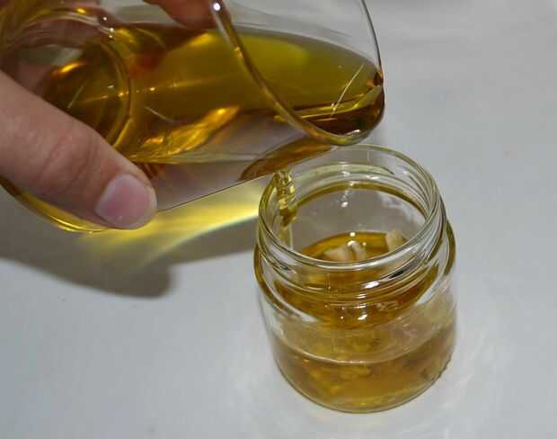 Añadir medio vaso de aceite a la cera.
