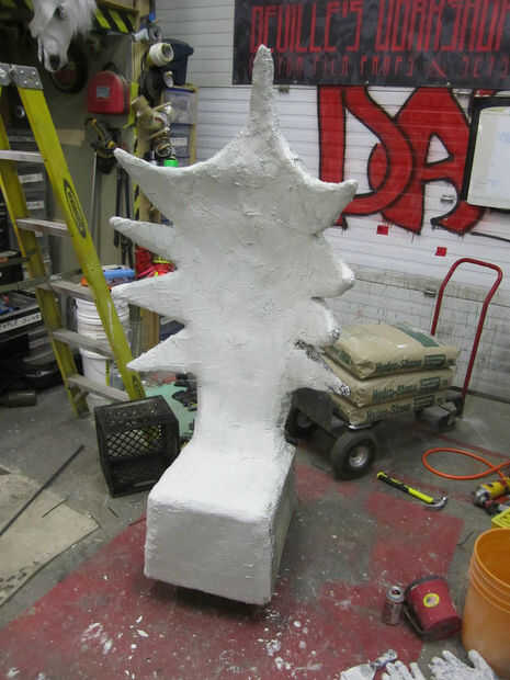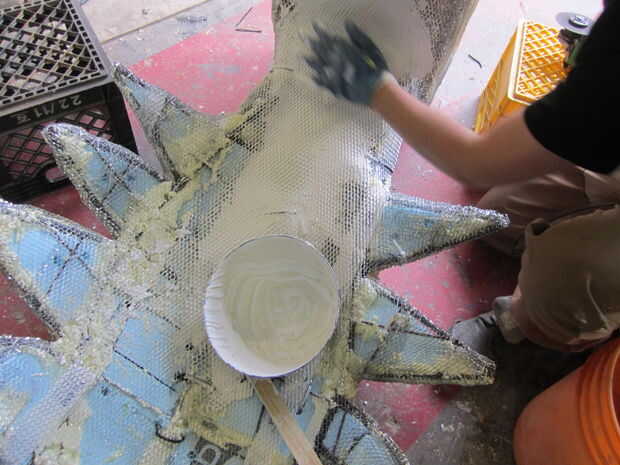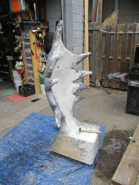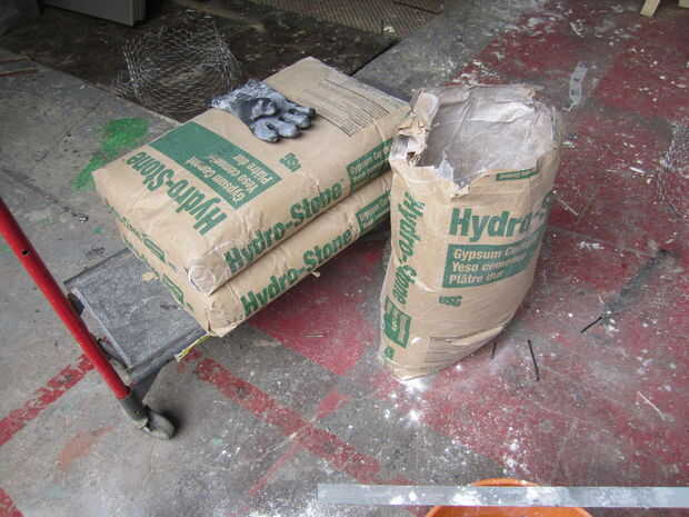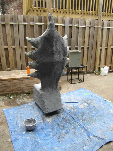 Usé el Hydrocal, que a menudo se utiliza para las estatuas del moldeado y el césped decorativos. Yo mezclar lotes muy pequeños (parpadea en unos 15 minutos) y realmente tratar de exprimir a través de la malla. Mi plan era a varias capas finas. Todo este proceso conducen a la mucho al parecer inadecuado frotando y masajeando de un gran falo de hormigón, que mi vecino encima de la valla me recuerdo de cada veinte minutos o así.
