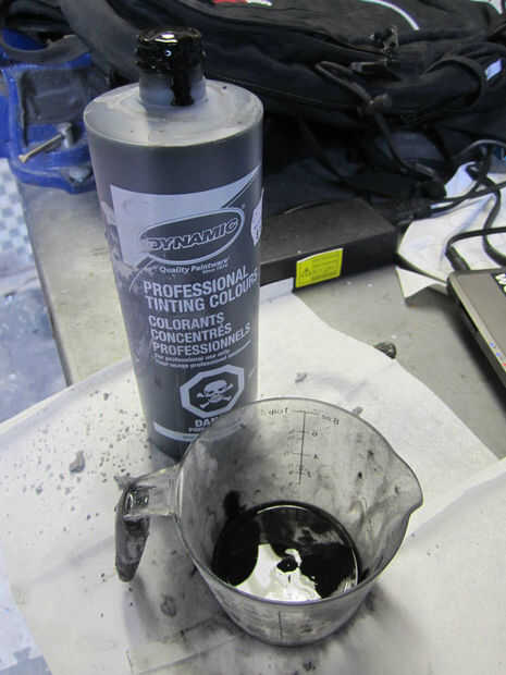 Después de terminar la parte delantera he decidido comenzar a añadir tinte. Era demasiado perezoso para caminar hasta las profundidades de casa y comprar un matiz concreto, por lo que acababa de usar un tono de pintura que tenía en la tienda, parece trabajar bien.