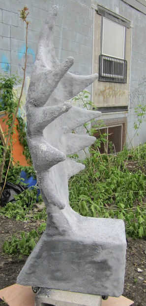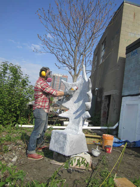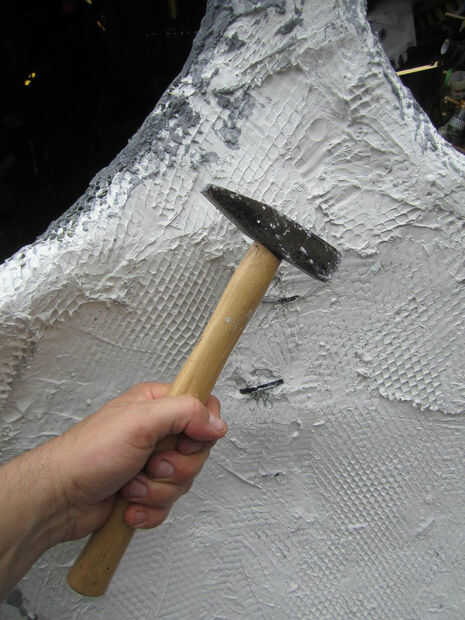 Pasé realmente realmente mucho tiempo romper la silla con un martillo, tratando de reducir los bultos y protuberancias en una superficie relativamente suave. Esto fue seguido por mucho ángulo de pulido con un cepillo de Copa alambre trenzado, intentando suavizar y ocultar mis pobres habilidades como un aplicador de hormigón.