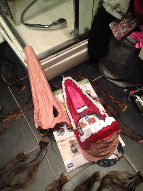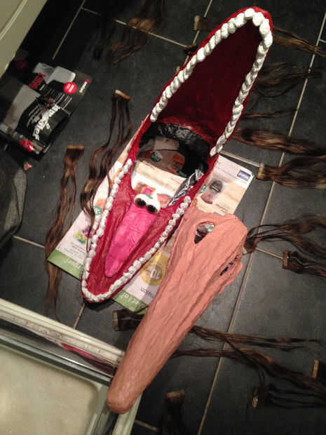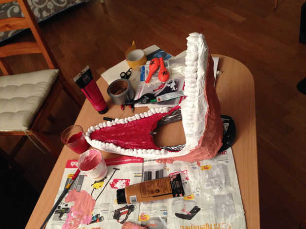 máscara de papel machéPaso 1: Papel maché, arcilla, pegamentoSe necesita arcilla de papel maché. Usé esto para esculpir y pegado y acaba de agregar más agua a la mezcla de pegamento y más harina y wallpaperglue de la arcilla.Ingredientes:pegamento de