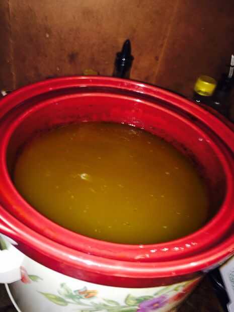 -1 pote de malhechores llenos con agua caliente. (2/3 de la olla es probablemente lo máximo que debe llenarlo) La olla, que permite a los alimentos para ser cocinados lentamente durante 8 horas, o más rápidos durante 4 horas. (La olla también mantendrá grandes bloques de más de 2 libras de cera de abeja sin procesar)