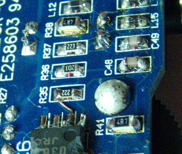 Nota: En el ejemplo se puede ver cada uno de la resistencia de 47 ohm substituida por un par apilado de resistencias de 4,7 ohmios en paralelo. Fue todo que podía gestionar en el momento porque no tenía resistencias de 2,2 ohm poner alrededor.