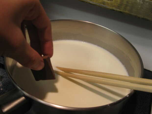 Removiendo, añadir el chocolate y un trozo a la vez, ese fragmento de mezcla en la leche, luego agregar otro. Seguir haciendo esto hasta que te quedas sin chocolate. Sí, sé que es laborioso, pero merecerá la pena al final.
