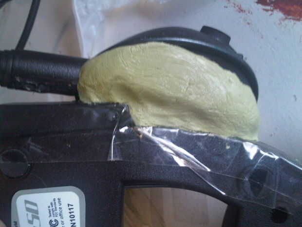 Siga las instrucciones para la mezcla de la masilla y llenar los espacios arriba y abajo con el compuesto, que forma a su Asamblea.