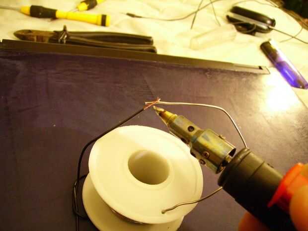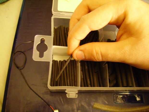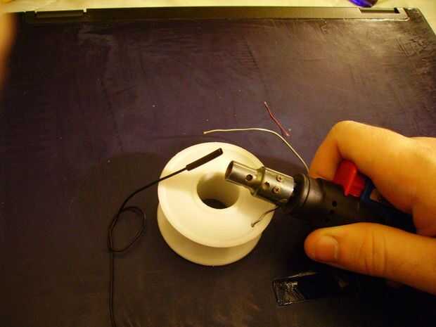 A continuación, en el otro extremo, tira de cualquier longitud, pero mantenerlo corto, soldar los dos hilos entre sí y cubren con tubo termo retráctil, que es el anttena ordenado...