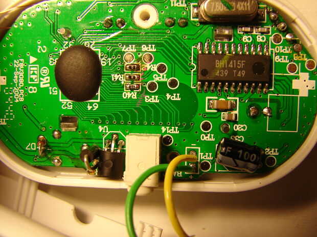 Aquí está la parte posterior del TuneCast, la IC es un transmisor de FM de Rohm, una compañía de semiconductores japonesa.