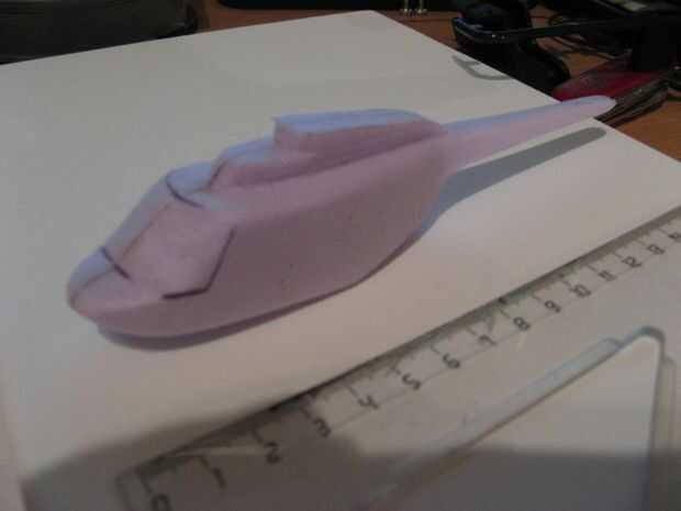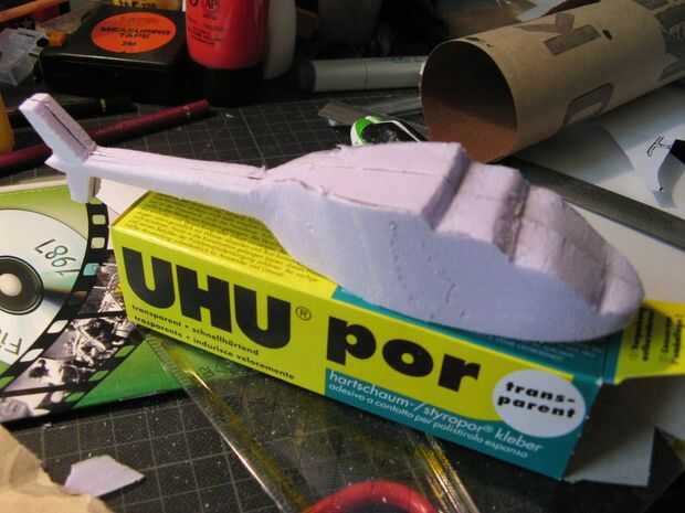 Recibí la hoja de la espuma azul (20mm) de la tienda de bricolage local. Fue sólo 3,99 euros y duraría unos 100 helicópteros más.