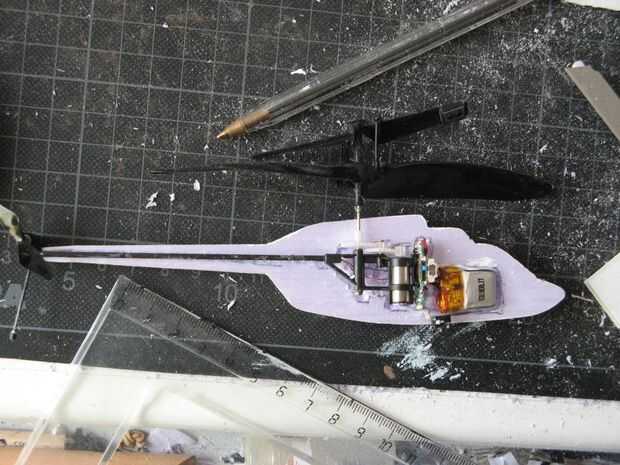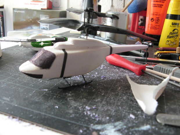 Pero funcionó. Y parecía impresionante con esta escala cuerpo de Jetranger, aún más fascinante que con el estándar del juguete cuerpo, por lo menos hasta que la cinta adhesiva se apagó y el helicóptero cayó aparte en tres partes de un metro del suelo...