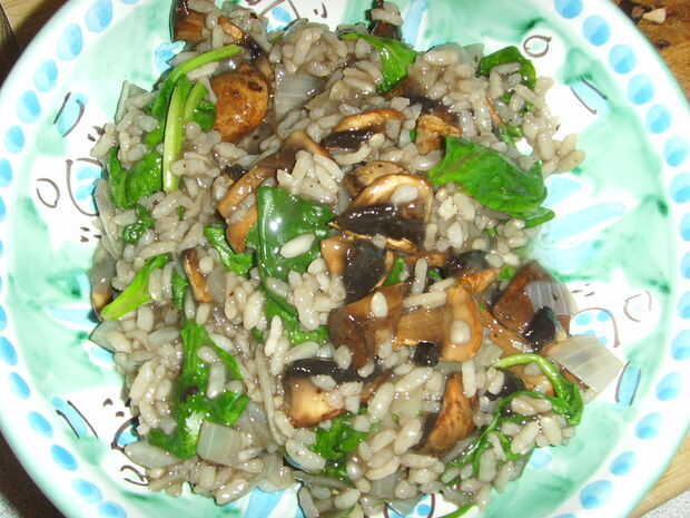 Este delicioso risotto sucio es lo que salió de los pocos ingredientes en mi nevera. La bella de bebé le dio un color distintivo.