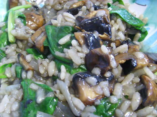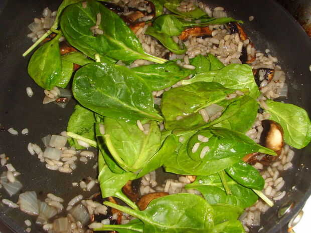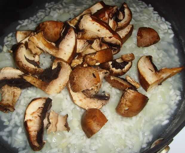 En ese momento añadir las setas picadas y cocinar por 3 minutos más. Puede que necesite añadir un poco de agua extra porque las setas absorben mucha humedad. Compruebe si necesita agregar más sal.