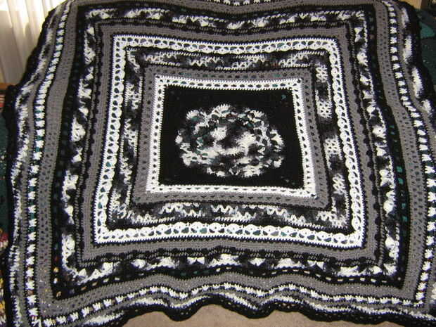 este patrón salió hace unos 20 años. No trato el patrón hasta el año pasado. Esto fue el 4 º que hice en 2007. Es se llama encaje y motas y es mi patrón muy favorito de todos. Cabe encima de una cama Queen size.