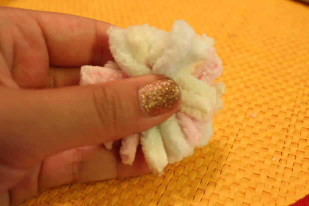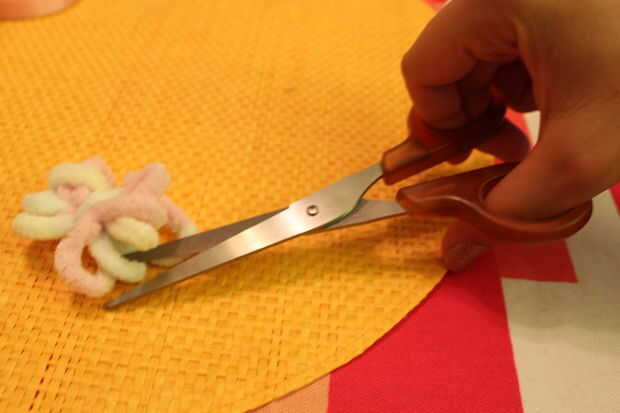 Luego cortar el hilo sobrante para darle una forma redonda.