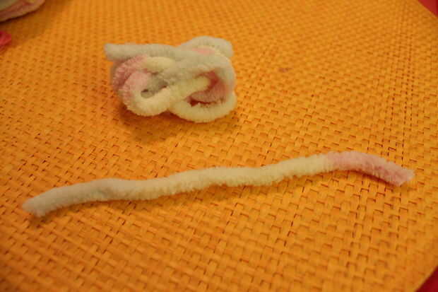Después de tirar el hilo de los dedos, corte la segunda pieza de hilo largo suficiente para envolver alrededor de la otra el rodillo varias veces. Se utiliza para atar todo junto. Debería verse como se muestra.