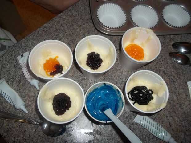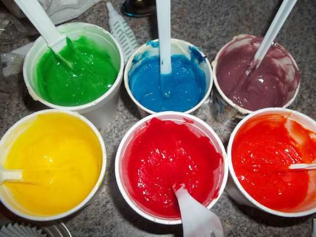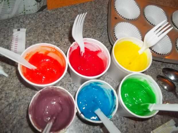 Cuando es listo puso en separado tazas de papel y añadir el color, mucho puesto que forma el color podría terminar más brillante mezcla les muy buena.