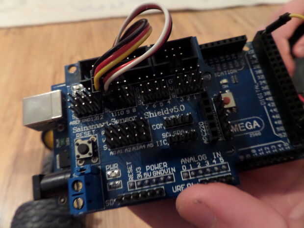 Protector de cable de servo derecho al sensor digital 11, cable de servo izquierdo al sensor escudo digital 10.