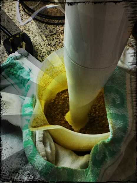 No tengo un elegante molinillo cosita empujó así que puse unos puñados en una jarra, una batidora con un paño sobre la parte superior.