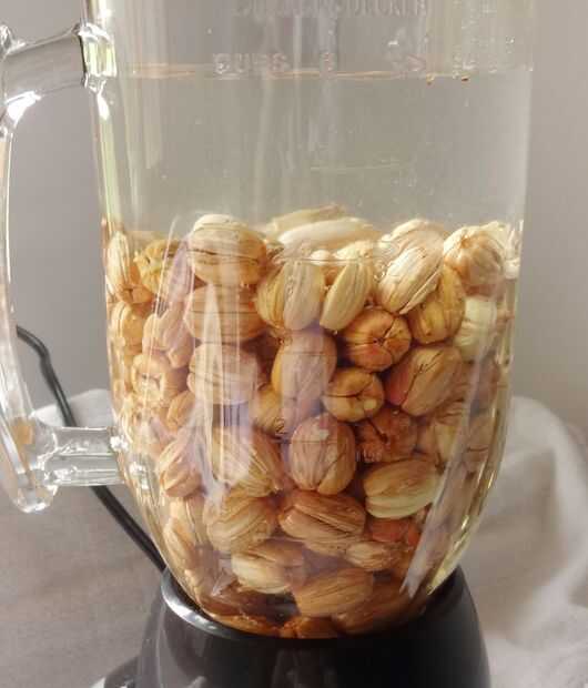Llenar la licuadora 1/2 a mitad de camino con sus bellotas sin cáscara y el agua del resto.