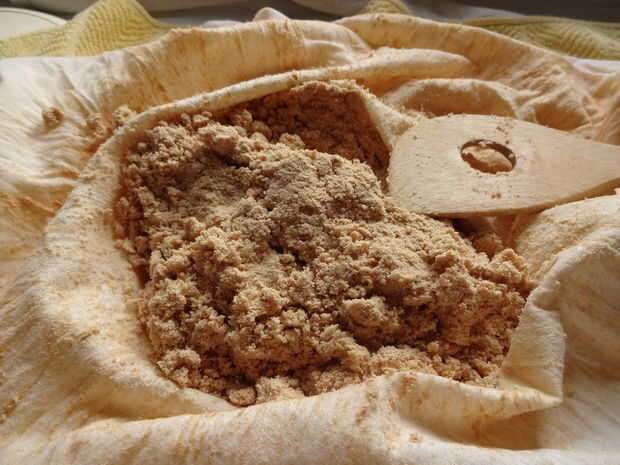 Volcar todo en un tazón grande y bate vigorosamente para separar en pequeños grupos.