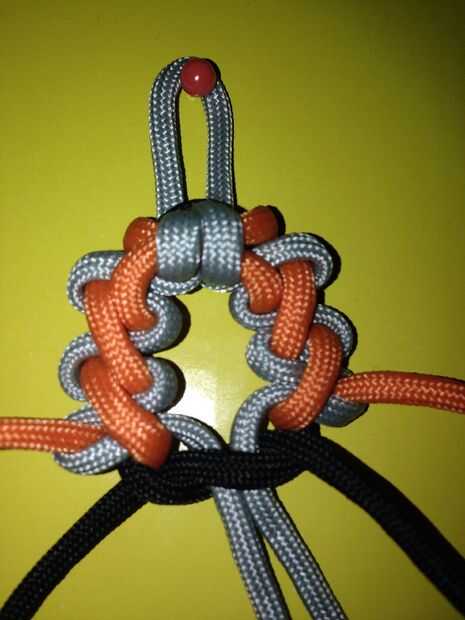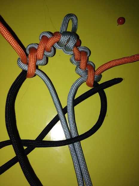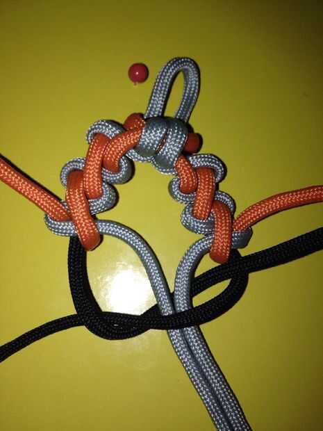 Ahora toma los cables negro y tire la derecha encima a la izquierda, detrás del negro y gris a través del lazo para hacer su primer anillo.