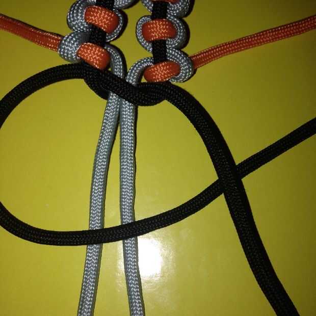 Paso ahora la izquierda negro cable sobre los 2 gris y negro entonces detrás de los 3 otros cordones y a través del lazo negro.