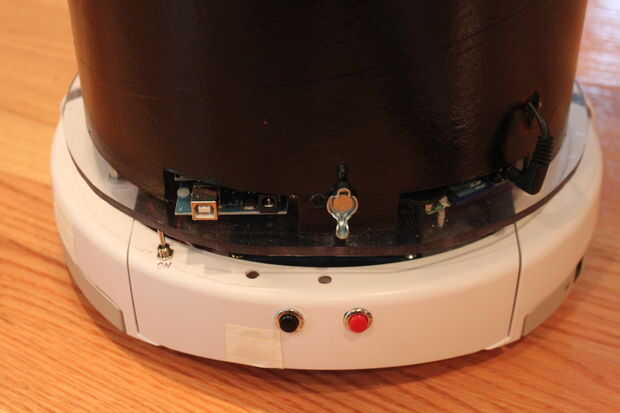 Para hacer más estable que Belvedere, pienso montar una rueda giratoria extra en el lado opuesto de la rueda que se incluye con el iRobot Create. Esta rueda adicional se muestra en las siguientes imágenes.