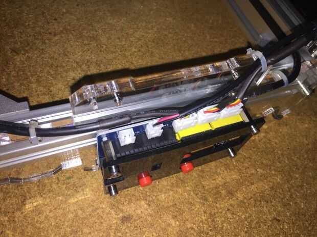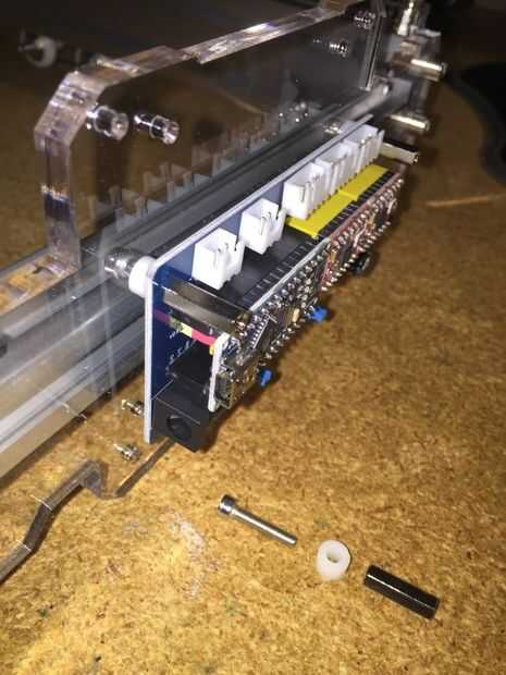 Monte el regulador con perno largo panel de acrílico, espaciador de plástico, placa de circuito, separador de metal. Coloque el capuchón rojo en los orificios de la cubierta plástica negra. Las tapas no es necesario adjuntar a los botones, pero puede estar encima de ellos. (fotos 1,2, 3 arriba)