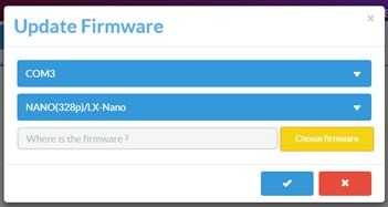 Debe instalar firmware en el Arduino Nano.
