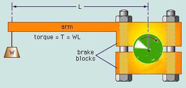 El freno Prony es un dispositivo inventado en 1821 por Francés Ingeniero Gaspard de Prony para medir esfuerzo de torsión producido por un motor. El tipo más básico es una palanca, que incluye una pinza que puede apretarse alrededor de un eje; se aprieta la abrazadera, la fricción aumenta. El par resultante se calcula multiplicando la fuerza medida en el extremo del eje por la longitud del eje: par = fuerza x distancia.