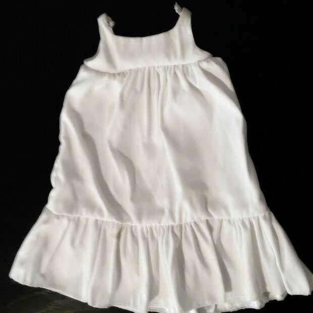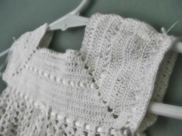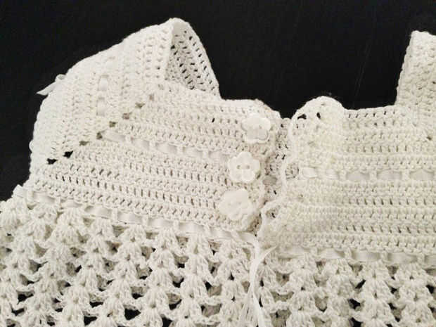 Creará los ojales en el patrón; Asegúrese de que los botones que eliges ajusten los orificios, o tenga en cuenta el tamaño del botón del ganchillo los agujeros del botón, agregar puntos de sutura si es necesario. He añadido una imagen de la hoja de longitud simple que hice, para que tengas una idea de qué poner debajo el vestido.