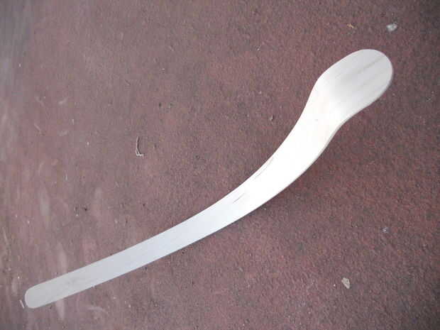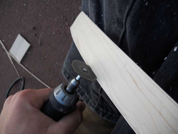El laminado en blanco será un poco largo en ambos extremos y los bordes pueden ser un poco desordenada, así que trazar su forma final con un desplazamiento en por todos lados. Usé una dremel para cortar la forma que había trazado en el espacio en blanco. Todo depende de la buena vieja mano coordinación ojo para este paso, así que deliberadamente con sus recortes.
