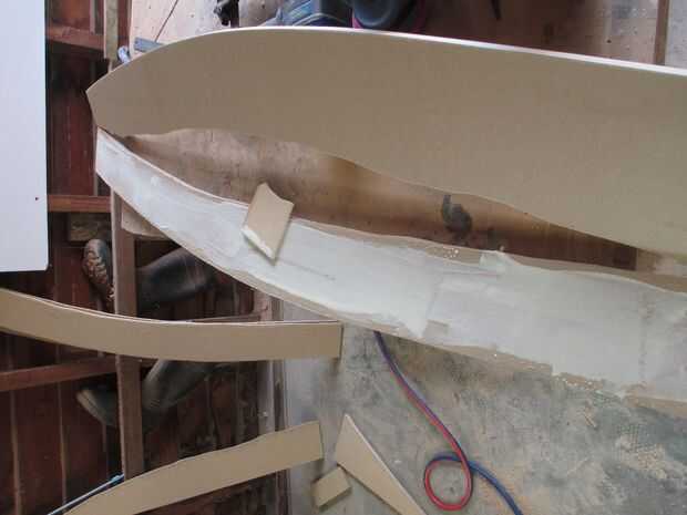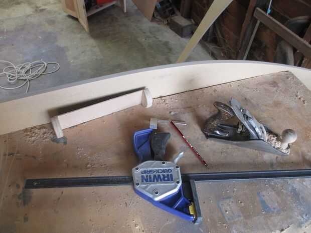 Corté la parte de atrás del molde curvado para dar manchas sólidas para las abrazaderas al asimiento del gancho agarrador. Entonces era una placa base de MDF para atornillar.