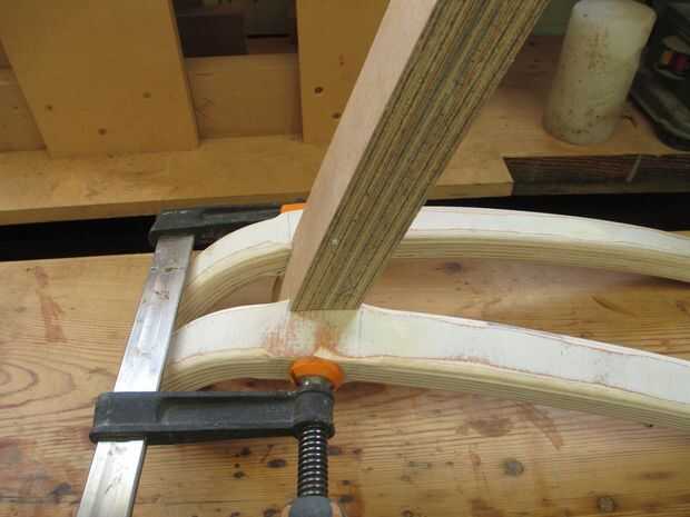 Corté un ángulo medio empalme de regazo para encajar las patas curvadas. En primer lugar había marcado hacia fuera las líneas rectas y entonces puso la pierna en la parte superior de la curva de transferencia. Las piernas splay, así que la vuelta media necesita orientarse. Ángulos hacia atrás para un borde es de 5mm de profundidad y la otra es 9mm profundo. He picado la articulación con una sierra de mano y limpiar con un cincel. Yo relleno una y cortar demasiado profundo. He arreglado esto por remendar con masilla de constructores y re picados lo.