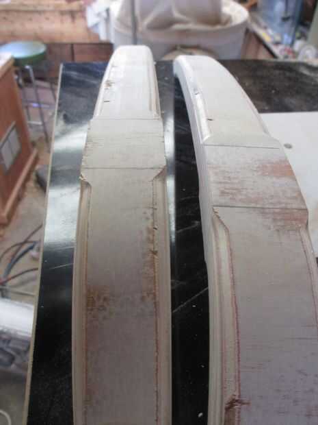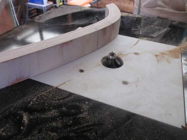 Las piernas tienen un 12mm redondo sobre en los bordes. Lo hice con un router en una mesa de fresadora que hice muy rápidamente. Usando el router no era la mejor idea, porque la madera barata astillado bastante mal. Yo pude haber sido más cuidadoso pero sabía sería puttying y pintura de las patas lo importaba. Con las piernas al cuerpo, pude justo las curvas al cuerpo con un archivo.