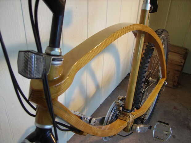 También tuve algunos izquierda epoxi y fibra de vidrio de un kayak construyó y fue solo con ganas de encontrar un proyecto en que podría utilizar (o quizás era sólo que pica de la fibra de vidrio). De todos modos, puesto que no estaba encantado con mi moto actual era cheapo 15 años caja grande tienda bicicleta, pensé que sería genial que reemplace el antiguo marco con un cuadro compuesto de madera y tener algo único.