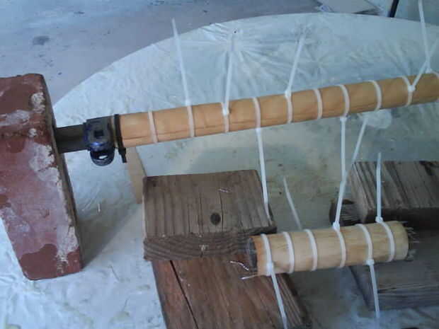 7. Retire el papel de cera y deslice el tubo de fibra de vidrio en el tubo. De arena y capa epoxi más y envolver con varias capas de papel grueso de algunos y añadir algunos epoxy como vas. El papel no necesita ser empapado con epoxi.