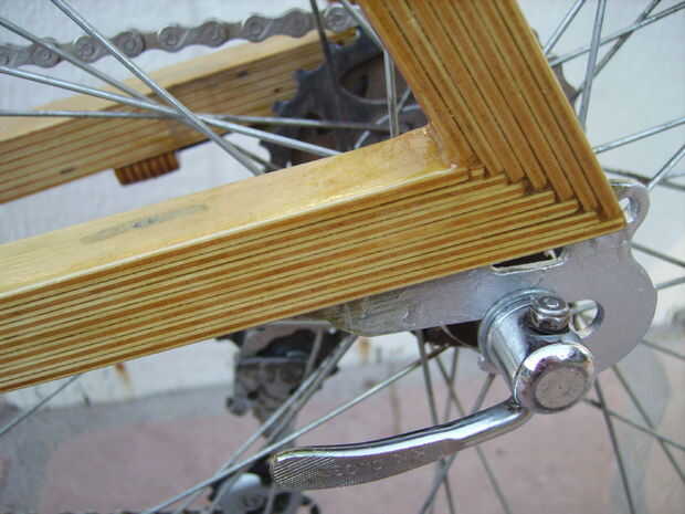 Para crear las ranuras, cavé un canal en la parte trasera del mismo tamaño que las punteras. Primero cortar el área utilizando una herramienta giratoria Dremel, luego pasó a usar un taladro de mano y de madera poco y la movió arriba y abajo el canal de la ruta de la madera. He diseñado para que el abandono tenga que girarse en la ranura, opuesta a la dirección que el marco empuja en la rueda.