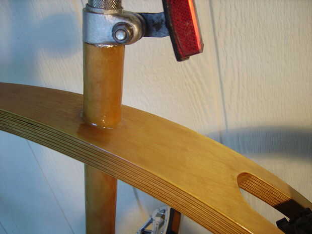 Una vez que el tubo del asiento se pega pegué la caja del pedalier en el lado opuesto del tubo hacia abajo. Fui por delante y envuelto alguna chapa del abedul extra alrededor de la caja de pedalier pero no era realmente necesario.
