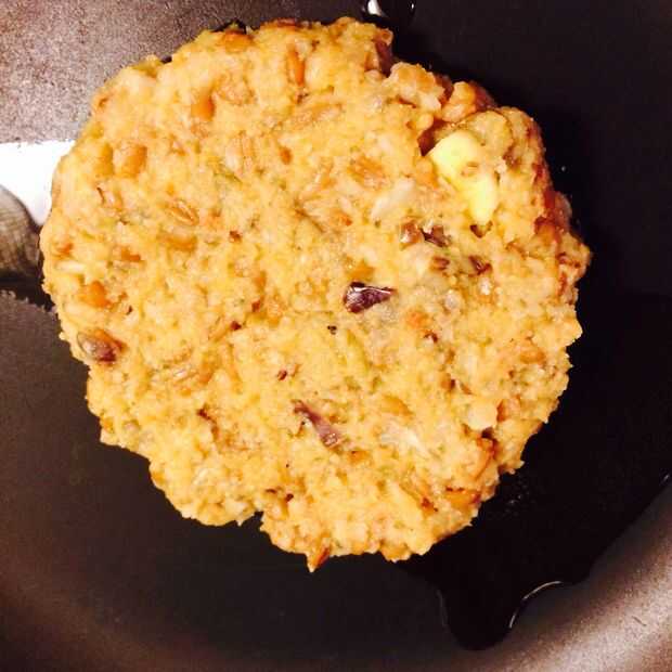 Cucharada 1/2 taza de la mezcla con una cuchara dosificadora, taza o porción. Forma una bola con las manos y acariciar en una empanada de espesor 3/4 de pulgada. Colocar en una sartén caliente y cocine durante 2 minutos por cada lado (hasta calentado a través y dorar ligeramente)
