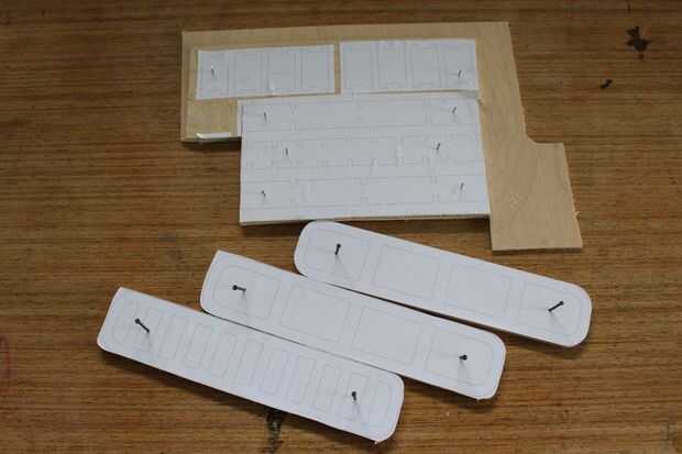 - Imprimir planos y se pegan a la madera de la capa, duplicar la madera según sea necesario.
