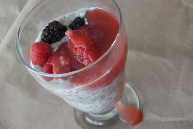 Chia con bayas toma segundos y es un gran refrigerio, desayuno de postre!