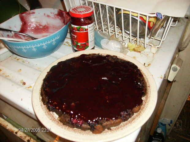 Invertir la torte en la bandeja, sobre papel de cera, quitar la parte inferior de la bandeja y extender el glaseado sobre la parte superior y los lados de la torte. Deje la torte reposar a temperatura ambiente. durante 2 horas o frío durante 30 minutos, o hasta que el esmalte está situado. El torte puede preparado hasta este punto, hasta que 1 día de antelación y guardado en el estante (cubierta con un cuenco invertido).