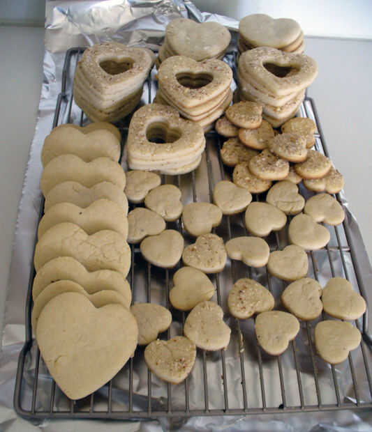 5. Hornear galletas sólidas 6-8 minutos o hasta que los bordes estén ligeramente dorados. Asegúrese de cocinar sólo la misma cookie de tamaño en cada hoja. Por ejemplo si decides cocinar los corazones que se recortan, cocinar en su propia hoja. Diferentes tamaños de corte requiere menos tiempo y potencialmente puede cocinar mucho más rápido que una cookie de tamaño regular.