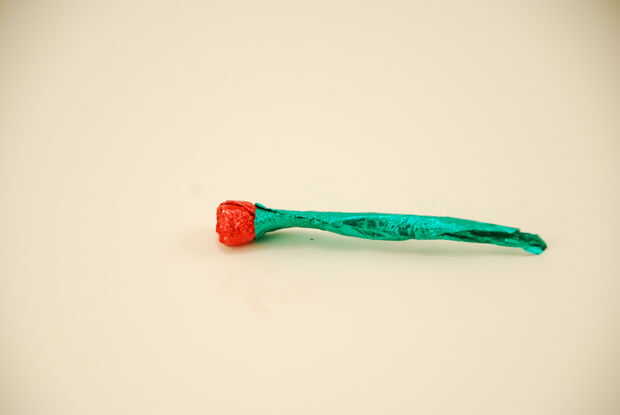 Tenga en cuenta que las flores se pueden hacer con cualquier envoltura de la hoja, no solo besos de Hershey, pero que la mayoría otros caramelos tienen envolturas más duras (también la ubicuidad del beso hace la presentación tal sorpresa).