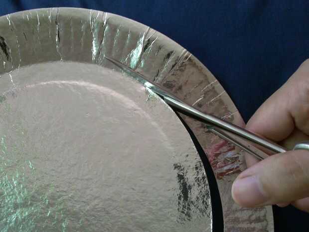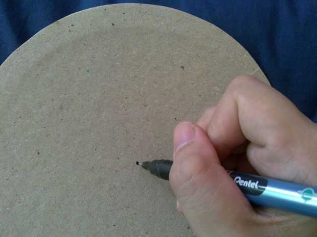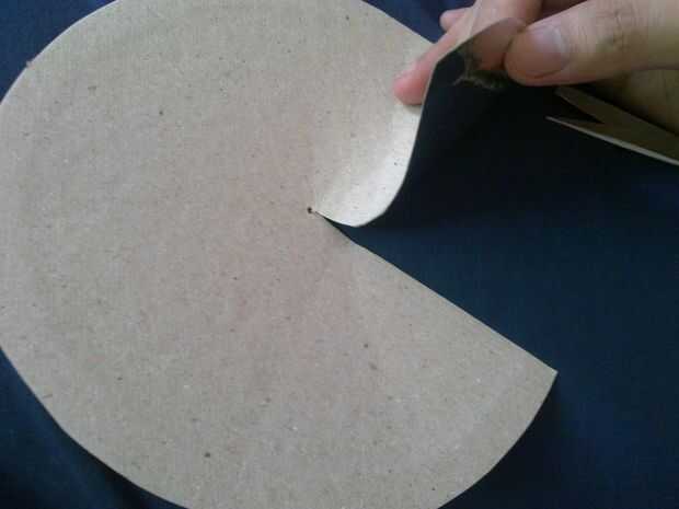 The cone. 1. cortar la parte exterior rugoso de su plato de papel 2. Marque el centro 3. corte a través hasta el centro 4. aproximar la circunferencia que desee para su cono