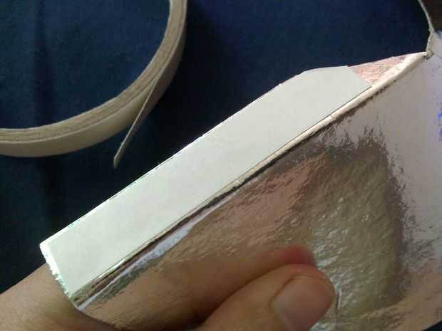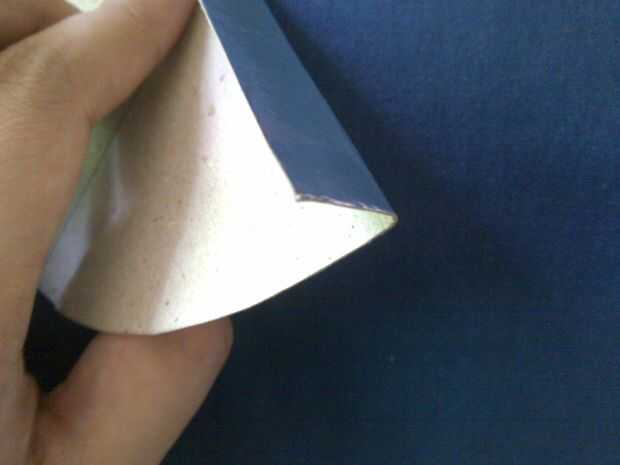5. poner una tira de cinta adhesiva de doble cara en la solapa y corte el extremo interno diagonalmente