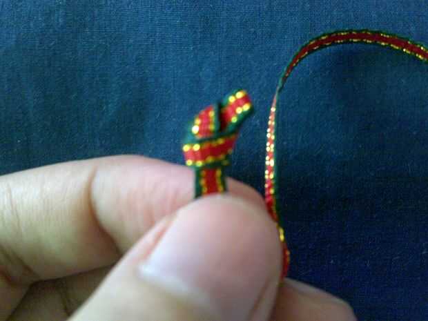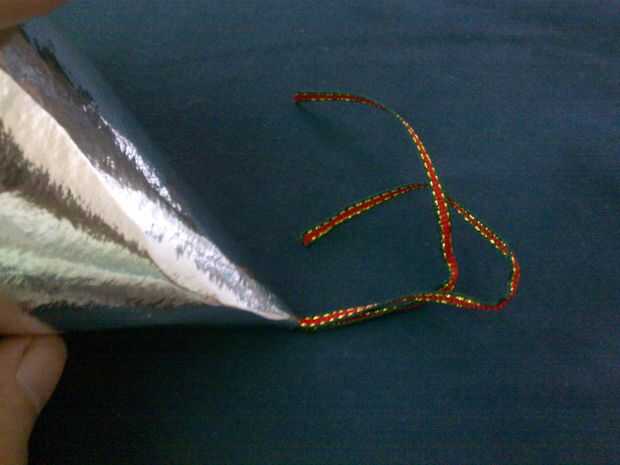 2... .y lo inserte a la punta del cono (dejando el nudo atrapado como anclaje) antes de que se pegan los bordes