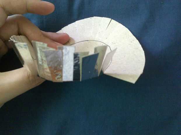 6. pegar las tiras pequeñas de cinta adhesiva de doble cara alrededor de la base