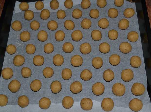 hacer bolitas pequeñas (un poco más grande que una avellana) y colocarlos en una cacerola, lejos uno del otro.